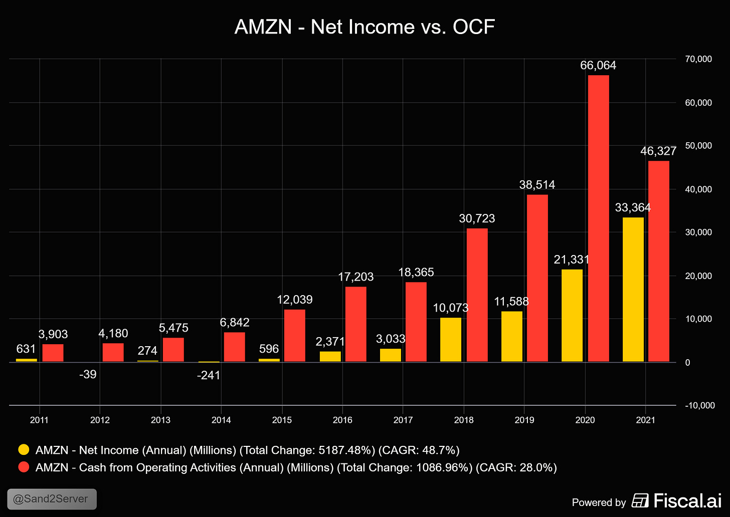 Case Study: Look at Amazon in its early years. Its GAAP profit was zero, but its operating cash Flow was massive because it was “expensing” its future. (also doing a lot of capital leases and having had a favorable (negative) cash conversion cycle).