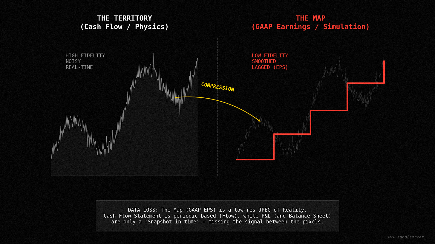 Accounting is a compression algorithm. Like a JPEG image, it sacrifices nuance for standardization. The “Alpha” exists in the data discarded during compression. To find it, you must decompile the “source code” found in the 10-K footnotes.
