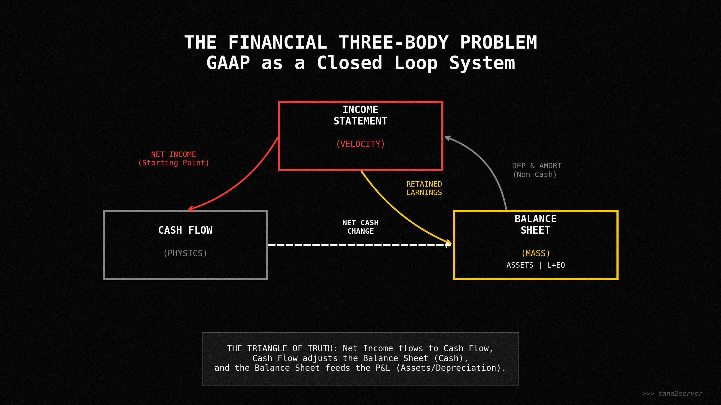 Before we debug specific modules, we must understand the system architecture. The three financial statements are not separate documents; they are a single, continuous loop of logic. If you touch one, the others move. They must “balance” - which is accounting speak for “the code compiles”.
